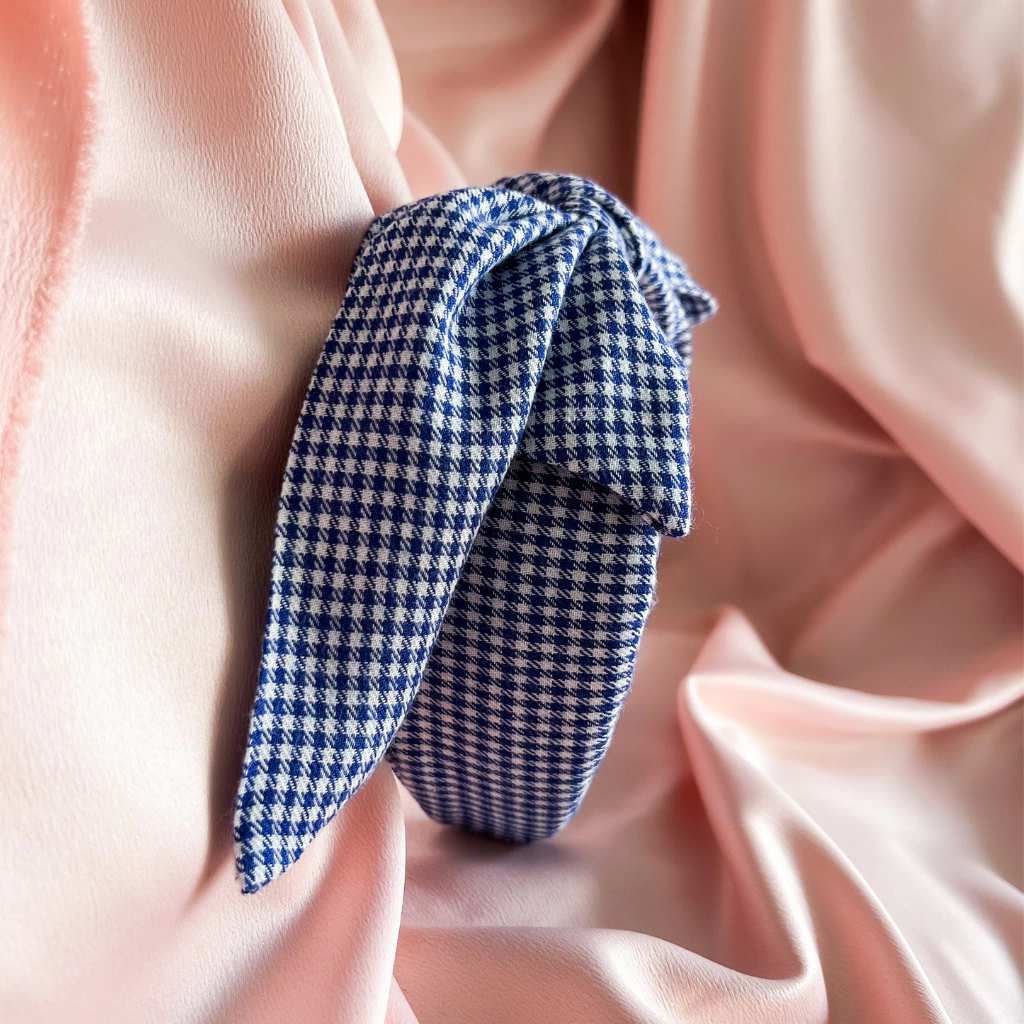 Edicion limitada. Diadema con lazo al costado, realizada con genero de estampa vichy en tonos azules. Ideal para combinarla con todo.